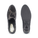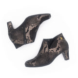 À la recherche d’un bottillon chic pour porter lors de vos 5 à 7? On vous propose ce modèle confortable et sophistiqué très facile à enfiler. Son imprimé de style serpent ajoutera assurément une touche “glamour” à votre tenue. Munie de semelles coussinées et un devant sans points de pression, ce bottillon gardera vos pieds confortable lors de vos sorties.