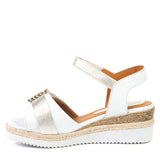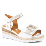 Our CLAUDIA sandal will be the star this summer! Details in the wedge sole and charm make every looks look good. If you want a simpler sandal for a special occasion, no problem, you can remove the charm from the sandal! This sandal has an extra cushioned insole and a stretch leather front to offer you the comfort you deserve.