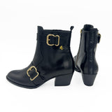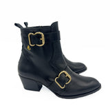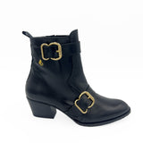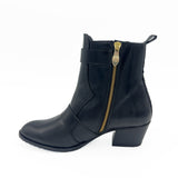 This equestrian style bootie is the perfect everyday shoe for all your outfits! With its light heel and gold accents, your feet will be in total comfort thanks to our extra cushioned insole and stretch leather front.