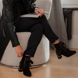 This stylish bootie with lace ribbon is the perfect touch for spicing up an outfit. Featuring gold hardware, this bootie is definitely unique and will surely make you stand out! Its fashionable design hides an extra comfy cushioned insole and our signature stretch leather front. You won't want to wear anything other than this boot!