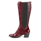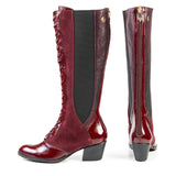 This knee-high boot will fit all types of calves, thanks to its laces and stretchy elastic band. Its stretch leather front and extra cushioned insole will surely make this boot your go-to for the winter.
