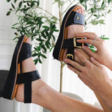 This sandal is both glam and functional! You won’t feel any pain during the day thanks to its extra-cushioned insole and its stretch leather that eliminates all pressure points on your joints! Its three Velcro straps will allow you to adjust for the perfect fit.
