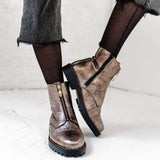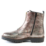 Add a little attitude to your outfit with this combat-boot style. A style that's easy to slip on thanks to its double zip (inside and front) and easy to walk in for long periods of time! Features an extra-padded insole and stretch leather lining.