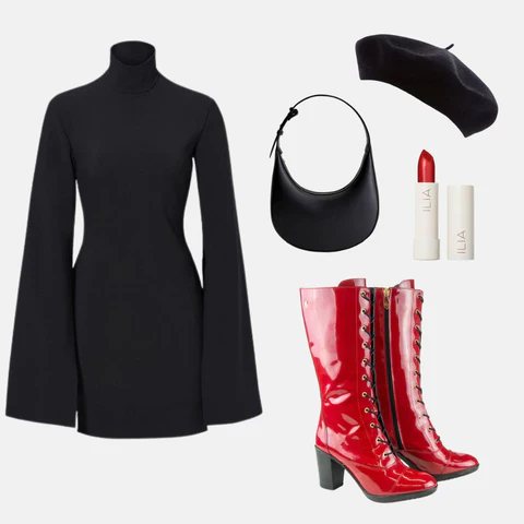 Notre botte haute SCARLET fait fureur dans les événements et soupers ! Portez-la avec un total look noir et un rouge à lèvre d’une teinte rouge éclatante.