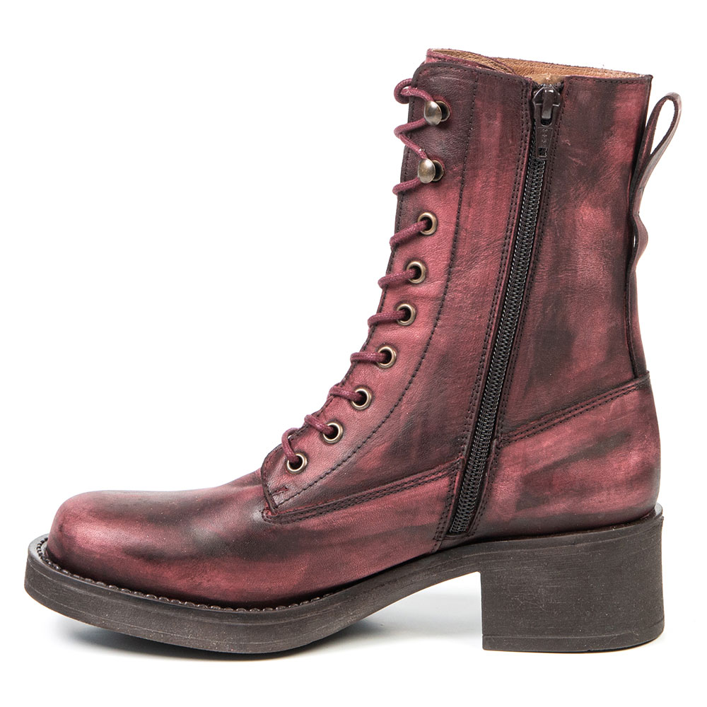 Affirmez votre style avec cette botte en cuir bourgogne au fini unique, peint à la main par des artisans. Chaque paire est une œuvre à part entière, avec des nuances riches et profondes. La devanture en cuir extensible élimine les points de pression, tandis que la semelle extra coussinée assure un confort durable, même pour les pieds sensibles ou avec Hallux Valgus.